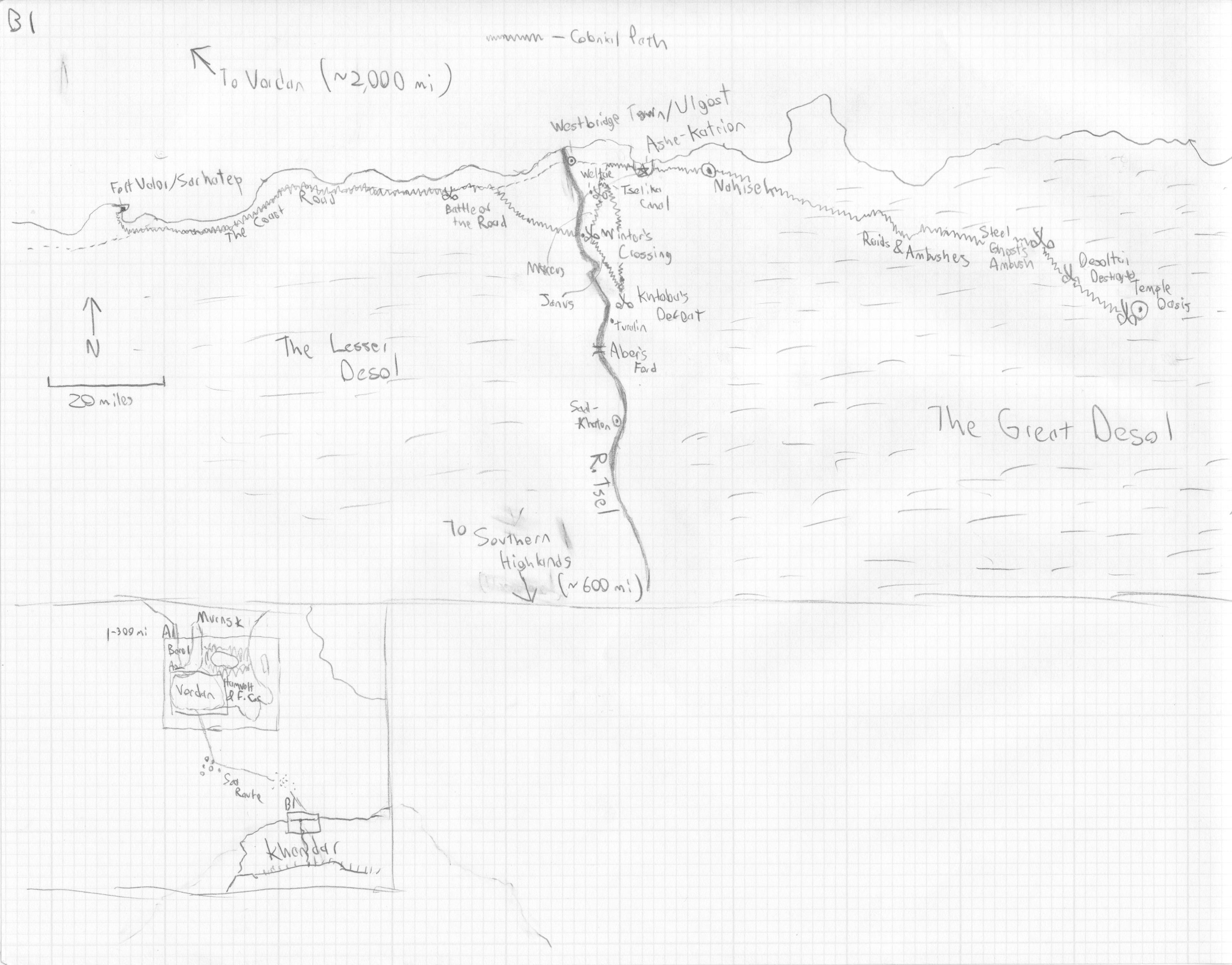 Fun story: the author sent me this after I contacted him to ask if his novel would include a map, because my advance review copy of The Thousand Names did not include the map found in the final version of the book. Django was kind enough to send me an electronic copy of the real map, and to include this sketched version as a special treat. I of course immediately asked him if I could share it with my readers, so… here it is! Thanks Django!
